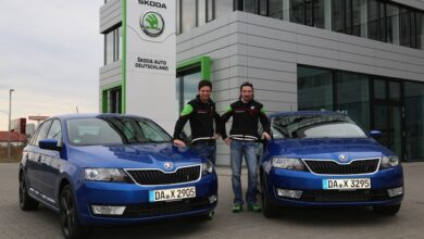 SKODA Werksfahrer freuen sich über Rapid Spaceback